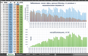 График в шапке статьи показывает снижение числа заражений, т.е. снижение числа инфицирующИХ вследствие реализации врЕменных остановок, причем, процесс идет прогрессивно. Полагаю, необходимо использовать музыкальные паузы для врЕменных остановок. Они реально усилят социальный иммунитет и реально спасут от заражений многие тысячи людей, см. выше график «НЕЗАБОЛЕВШИЕ». Пройти мимо этой возможности — жестоко!