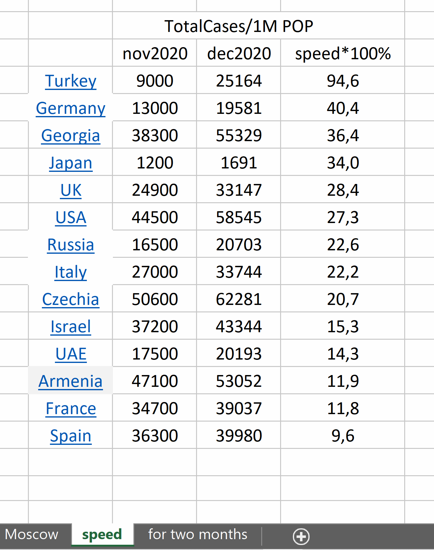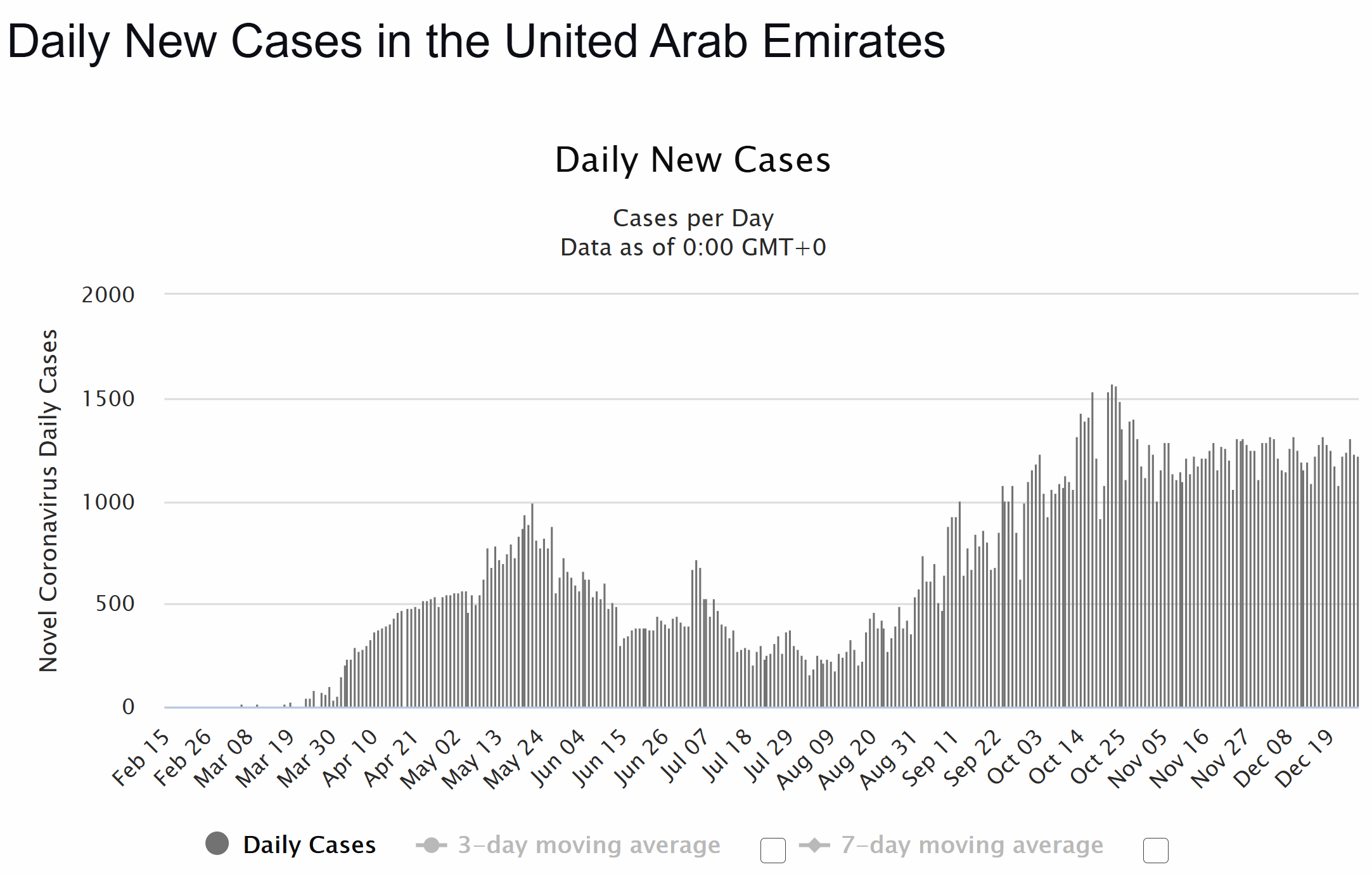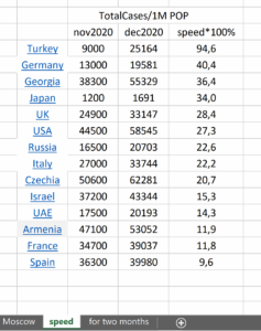 В 2020-м я побывал в Чехии в марте, в Турции в августе — сентябре, в Объединенных Арабских Эмиратах в декабре. Всюду я видел обязательное строгое отношение людей к приемам самозащиты: ношению маски, порой(!) перчаток, мытью мылом и обработке рук антисептиками. Однако, в Чехии в декабре новая вспышка, в Турции осенью был большой рост. Строже всего соблюдение правил я наблюдал в Объединенных Арабских Эмиратах и, тем не менее, там стабильно большие показатели заражений.